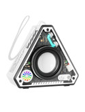 اسپیکر بلوتوثی با طراحی خاص مثلثی و بدنه نیمه شفاف انتخابی بی نظیر وزیباست این اسپیکر قابل حمل و دارای کیفیت صدای شفاف و باس قوی می باشد و مناسب برای استفاده در سفر محل کار و خانه